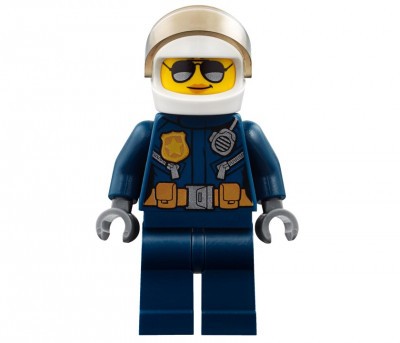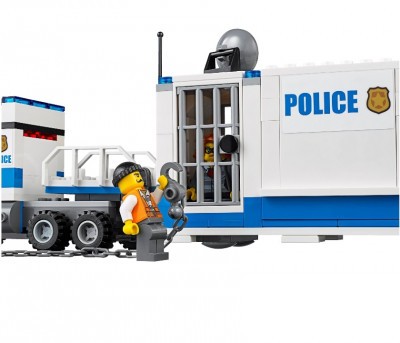 Из деталей набора Вы сможете собрать подробную модель командного центра городской полиции. Его основой служит длинный тягач, разделённый на две части. Спереди видна массивная кабина, оборудованная голубоватым ветровым стеклом, снимающейся крышей, сигнальными огнями, боковыми зеркалами и усиленным капотом.