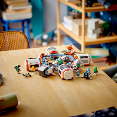 • Конструктор включает космическую станцию, космический мотоцикл и капсулы с научной лабораторией, мастерской, кухней, спальными помещениями и биокуполом, а также 6 минифигурок космонавтов.