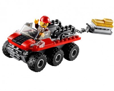 С этим набором у вас будет отличная возможность проиграть эту сцену у себя дома. Пожалуй, самый необычный транспорт из конструктора – гидроплан. В его основании установлены посадочные поплавки, с помощью которых можно взлетать и садиться на воду. Выше находится кабина пилота с прозрачным лобовым стеклом. Крышку гидроплана можно приподнять и рассмотреть подробнее штурвал и приборную панель. Как у настоящего самолета, на крыльях можно заметить проблесковые маячки. Трехлопастной пропеллер расположен в носовой части и может вращаться.