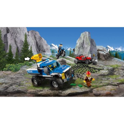 Отряд горной полиции не дремлет и вовсю патрулирует горную местность. Вот и сейчас, обнаружив воришку на вездеходе, полицейские бросились в погоню на своем внедорожнике. И пусть грабитель не думает, что камнепад может помешать преследованию. Ведь в кабине припасен полицейский байк, который способен передвигаться по самым узким горным тропкам, к тому же на вооружении у полиции стоит пушка, стреляющая ловчей сетью. Хотите проиграть эти сцены у себя дома?