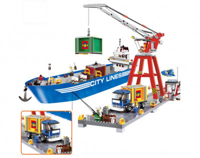 В порт Лего Сити прибыл огромный транспортный танкер, перевозящий на своем борту особо ценные и ожидаемые грузы. Самое время начать разгрузочные работы, предварительно построив всю локацию и необходимые транспортные средства из набора 02034 Lepin Порт.