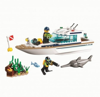 Основной постройкой набора является яхта для дайвинга, на которой пара отважных дайверов путешествует по водам, окружающим город. Белоснежная лодка полностью подготовлена к увлекательным путешествиям! На ее борту есть все необходимое, чтобы сделать их незабываемыми.