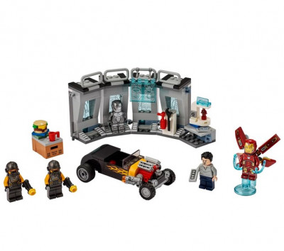 Мастерская вмещает системы для хранения костюмов, инструменты и оснащение для изготовления новых моделей. Здесь же таинственная коробка с надписью "Игрушки Тони", на которой стоит красная кружка и лежит бургер для завтрака.