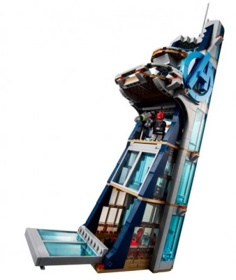 Каждый этаж оснащен сигнальным освещением. На здании большой синий символ Мстителей. На крыше предусмотрена посадочная площадка.