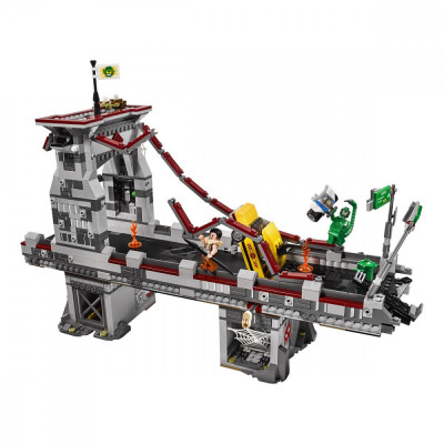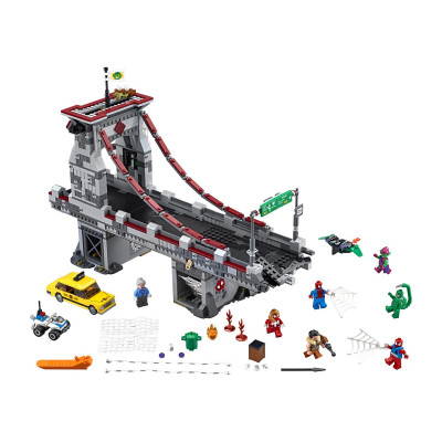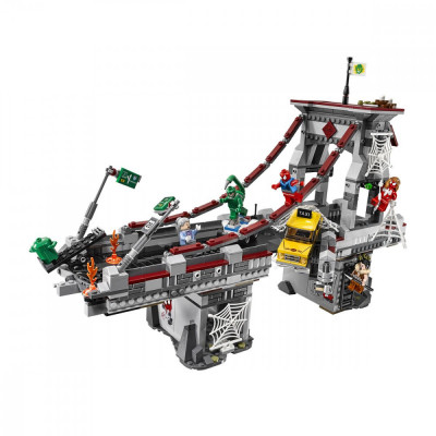 Из деталей набора Вы сможете построить часть моста, ставшего полем битвы между злодеями и воинами паутины. Вся конструкция выполнена из элементов серых оттенков.