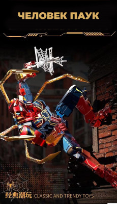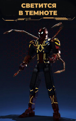 Конструктор «Броня Железного Паука» — высококачественный набор из 1132 деталей имеет размеры 36*21*19 см. Соберите нанонитовый костюм Питера Паркера, созданный Тони Старком и окунитесь в мир Мстителей. Боритесь со злом, используя все возможности суперкостюма: огромная прочность выдерживает удар самого Таноса, подвижные конечности и суставы позволяют принимать всевозможные положения, руки традиционно стреляют паутиной, четыре паучьих лапы на спине увеличивают маневренность и результативность в режиме «мгновенное убийство», а миниатюрные дуговые реакторы светятся в темноте. Собранная модель бронированного костюма Человека-Паука украсит выставочную полку или станет шикарной игрушкой для фанатов Супер Героев.