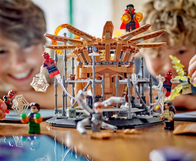 Набор воссоздает захватывающую битву из фильма Marvel Studios «Человек-паук: Нет пути домой». Это потрясающее чествование Человека-паука, наполненное культовыми персонажами и паутиной, очарует поклонников в возрасте от 10 лет и старше.