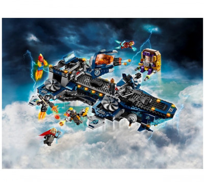 Отважные герои отправляются на поиски страшного монстра, запрограммированного на уничтожение. В наборе "Мстители: Геликарриер" в распоряжении супергероев уникальный вертолет, способный перевозить не только мобильный воздушный транспорт, но и опасного злодея, в специально оборудованной для него тюрьме.