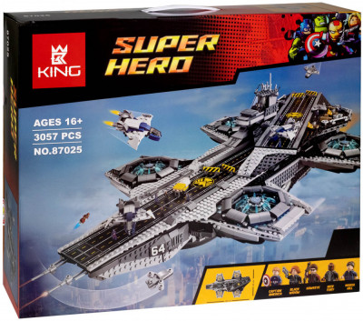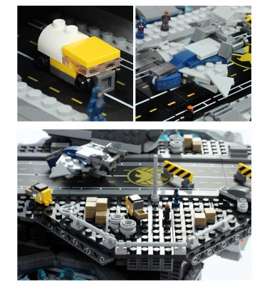 Из 3057 деталей вам предстоит собрать летающую штаб-квартиру организации по борьбе с преступностью Щ.И.Т., по совместительству она является и авианосцем. Именно здесь отчаянная пятерка Ник Фьюри, Чёрная Вдова, Капитан Америка, Мария Хилл и Соколиный Глаз разрабатывают планы по захвату самых страшных злодеев современности.