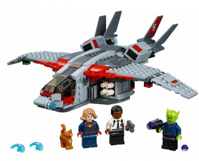 В наборе 4 минифигурки — Мисс Марвел, Ник Фьюри, злодей скрулл Талос и кошка Гуз, также вы соберете реактивный самолет! В наборе 356 элементов, так что процесс сборки не будет сложным, но и скучным его точно не назовешь!