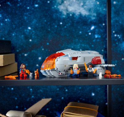Перенесите детское воображение через вселенную на борту впечатляющего космического корабля Хупти. От приключения к приключению дети могут использовать два шипомета для защиты от вражеских атак. Открыв кабину The Hoopty, дети получат доступ к научному оборудованию, записям и другим аксессуарам космического корабля. Также есть место для команды из трех минифигурок: Капитана Марвел, Мисс Марвел и Фотона, а также Гуся Флеркена.