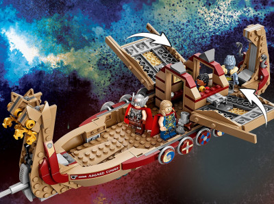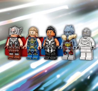- Знаменитые супергерои - На борту могучего корабля Тора есть пять минифигурок из фильма: Тор, Могучий Тор, Валькирия, Корг и Горр. Множество реалистичных аксессуаров вдохновляют на творческую игру