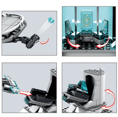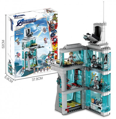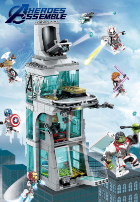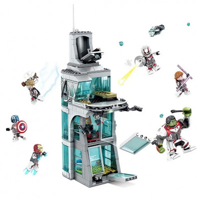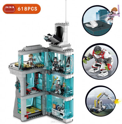 Башня Мстителей или Старк Тауэр – это огромный небоскрёб, принадлежащий корпорации Тони Старка (Железного Человека). Из деталей набора Вы сможете построить три верхних этажа здания, служащих штаб-квартирой супергероев. Фасад башни выполнен из серых деталей с добавлением голубых окон различной формы.