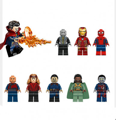 В набор входят 9 минифигурок: Доктор Стрэндж, Вонг, Железный человек, Человек-паук, Эбони Мо, Мастер Мордо, Зловещий Стрэндж и Мертвый Стрэндж из параллельных вселенных, а также Алая Ведьма.