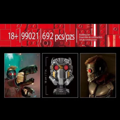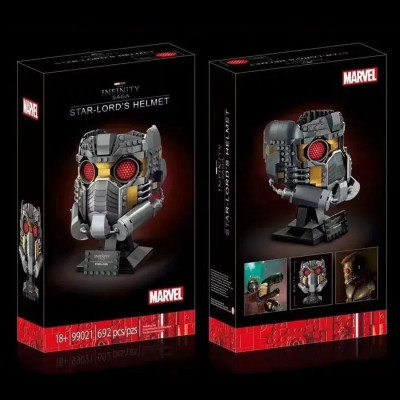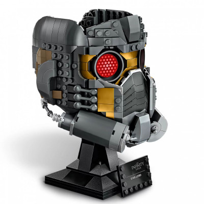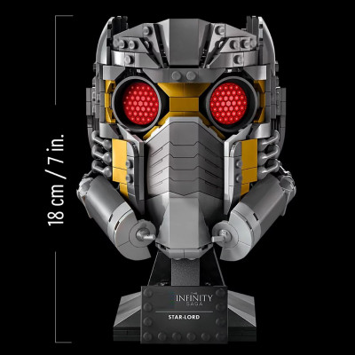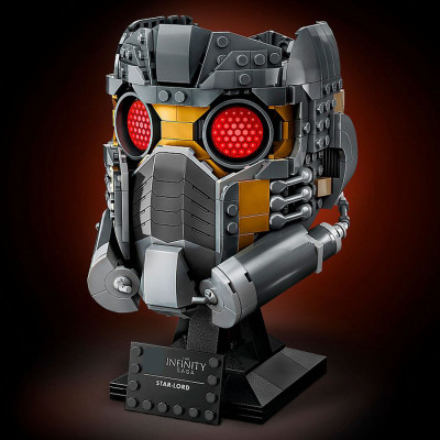 - Сборная копия — 692 кубика объединяются, чтобы воссоздать шлем Звездного Лорда, установленный на прочном основании с именной табличкой.
