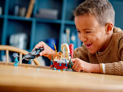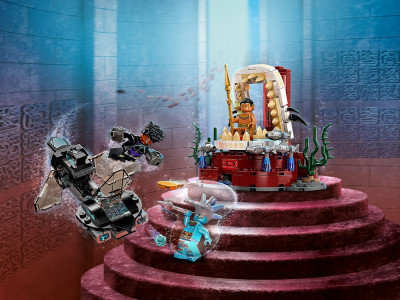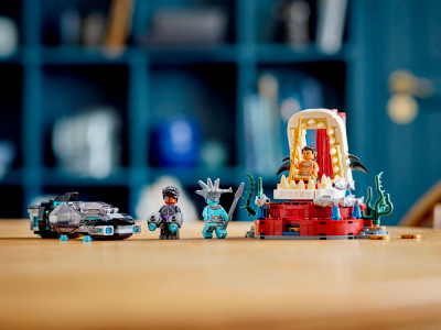 Минифигурки Шури, Аттумы и кололя Нэмора, сборная подлодка, тронный зал и аутентичные аксессуары. Захватывающие подводные приключения ждут фанатов супергероев от 7 лет и старше в наборе Marvel Тронный зал короля Нэмора.