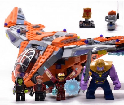 - 3 минифигурки: Звёздный Лорд, Гамора и Железный человек