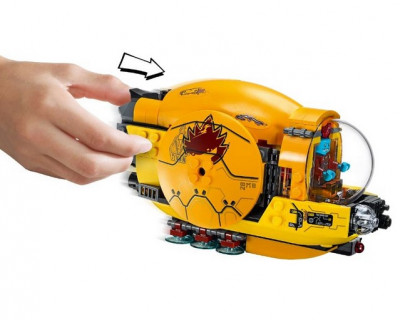 Из деталей набора Вы сможете собрать модель транспортного средства Йонду. Его обтекаемый корпус выполнен из ярко-жёлтых элементов. Спереди располагается вместительная кабина, прикрытая полукруглым лобовым стеклом. Чтобы открыть кабину и рассмотреть её интерьер, необходимо взяться за крышу машины и отвести её назад. При этом между лобовым стеклом и кузовом образуется ниша, в которую можно поместить минифигурку с оружием.