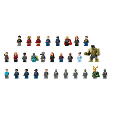 Знаменитые персонажи — набор включает 29 фигурок легендарных персонажей, в том числе Железного человека (Iron Man), Вонга (Wong), Капитана Америку (Captain America), Тора (Thor), Черную вдову (Black Widow), Ника Фьюри (Nick Fury), Халка (Hulk), Воителя (War Machine), Вижена (Vision), Соколиного глаза (Hawkeye), Ванду Максимофф (Wanda Maximoff) и Осу (The Wasp).