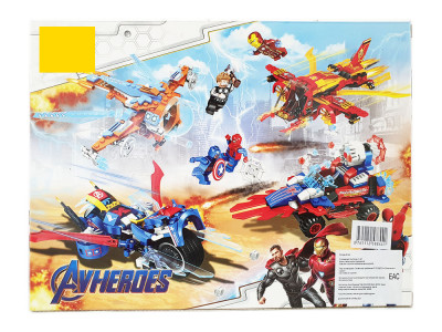 В набор входят 4 героя Железный человек, Капитан Америка, Человек Паук, Тор.