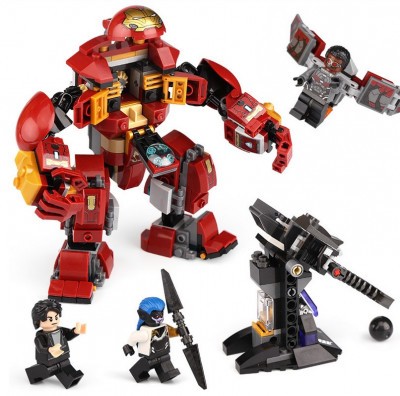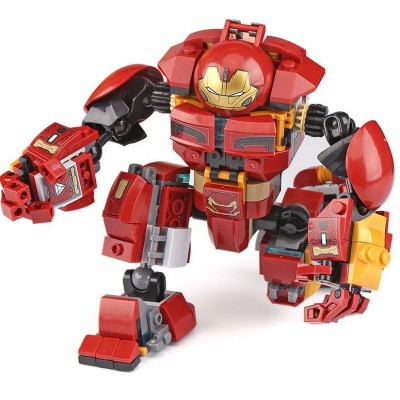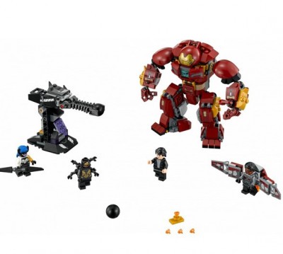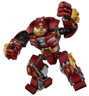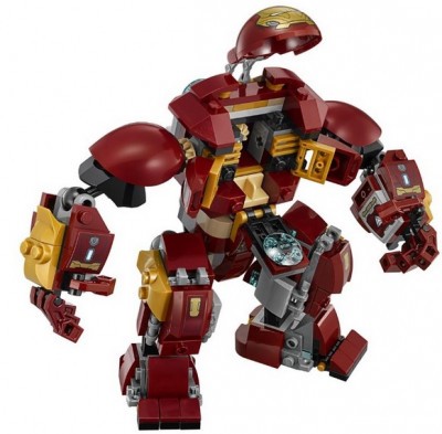 Из красных и золотистых деталей собирается корпус Халкбастера. Под нагрудным щитком находится кабина управления. Сюда нужно поместить фигурку Брюса Бэннера. По сюжету, герой помещается в кабине в полный рост и отсюда управляет всеми движениями костюма.