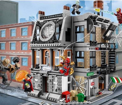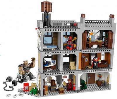 В Святая Святых Доктора Стрэнджа хранится много артефактов, но самый желанный для могучего титана Таноса – Камень Бесконечности. Именно за ним злодей послал двух своих лучших приспешников Кулла Обсидиана и Эбони Мо. Не стоит думать, что силы зла провернут это дело по-тихому, здесь будет полная демонстрация своей силы, суперспособностей и крутости. Вперёд за конструирование! Вам предстоит собрать фрагмент нью-йоркской улицы (Бликер-стрит), состоящий из двух трехэтажных зданий. Для лучших игровых моментов расположение локации можно менять, делая ее линейной, Г-образной или объемной.