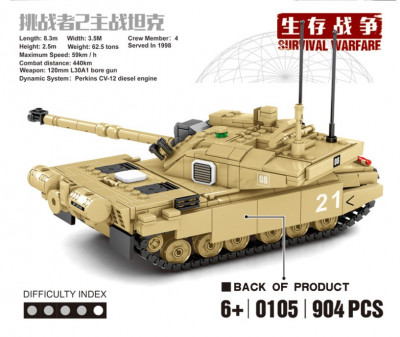 Построенная из данного конструктора модель представляет британскую бронетехнику третьего поколения. Сразу следует отметить: несмотря на то, что Англия – это родиной первого танка, английские боевые машины не пользуются широкой известностью в мире. Предлагаемая игрушка несколько заполняет возникший пробел. Она же знакомит с визуальными данными «Челленджера 2», являющегося основной боевой единицей в сухопутных войсках Великобритании. Предполагается, что этот танк останется таковым вплоть до середины тридцатых годов текущего столетия.