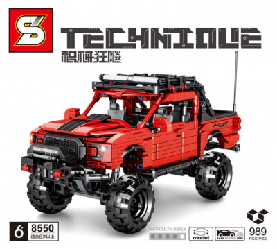 Конструктор «Ford Raptor» — высококачественный конструктор серии Техник, полностью совместимый с известными конструкторами. Отлично детализированная модель серийного пикапа порадует ценителей настоящих внедорожников. Огромные колеса с грязевыми протекторами предназначены для преодоления любых преград, дополнительные светильники на крыше и мощная радиостанция позволят отправиться в далекую экспедицию, а инерционный двигатель «Pull Back — откати и отпусти» позволит создать много сюжетов из мира экстремальных гонок.
