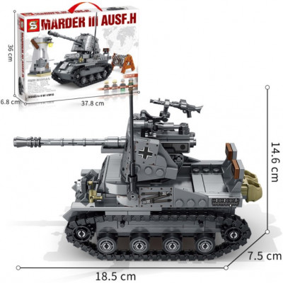 Конструктор позволит ребёнку узнать, что представляла собой немецкая самоходная пушка, которая активно использовалась во Вторую мировую войну в войсках вермахта. Модель из набора Немецкая противотанковая САУ Marder III является точной копией реальной военной техники. Размеры игрушки составят: 18 см в длину, 7 см в ширину и 15 см в высоту.
