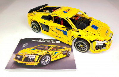 В фирменной коробке конструктора 13127 MOULD KING Audi R8 V10 упаковано около двух тысяч строительных «кирпичиков», поэтому детям до подросткового возраста потребуется помощь родителей во время сборки.