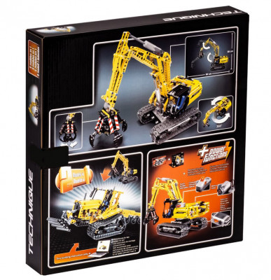 Гусеничный ход и способность кабины вращаться вокруг своей оси позволяют экскаватору работать практически в любых условиях, подстраиваться ко всем неровностям грунта и выполнять массу технических задач. Если этого окажется недостаточно, то модель можно перестроить в трактор на гусеничном ходу с подвижными задними и передними инструментами, регулируемыми и съёмными ножами плуга и открывающимся капотом.