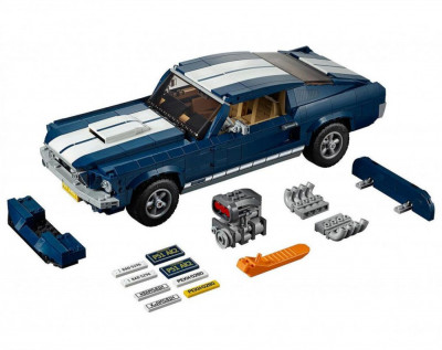 Конструктор Ford Mustang — копия легендарного американского маслкара, которую создало LEGO при участии инженеров из компании Ford. Особенности ретро машины: темно-синий кузов с 2-мя полосами белого цвета, функциональный капот, эмблемы GT, диски CW-5 с шинами, печатный знак Мустанга на решетке.