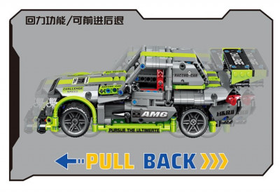 Мега-крутой болид вам предстоит собрать из этого конструктора. Оригинальная серо-зеленая расцветка кузова позволит выделиться в важных гонках и авто-шоу. Но по-настоящему запомниться зрителям и победить в заезде поможет сложная и завораживающая структура авто.