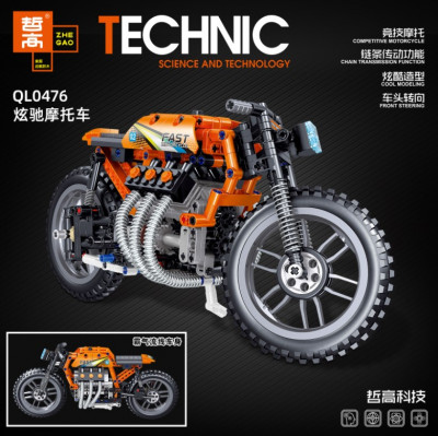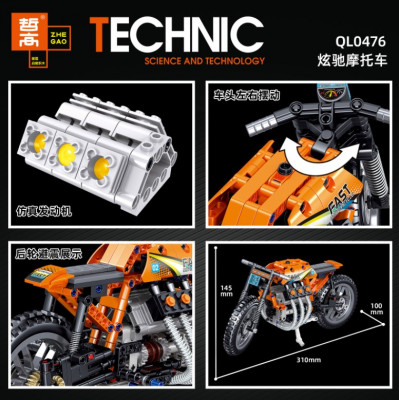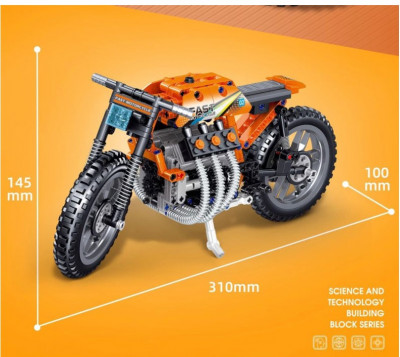 Мега-крутой мотоцикл вам предстоит собрать из этого конструктора. Оригинальная оранжевая расцветка кузова позволит выделиться в важных гонка.