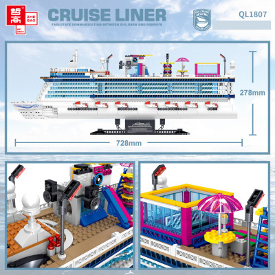 Создатели игрушки добились максимального сходства модели с оригиналом. Такому успеху набора QL1807 ZHEGAO Круизный лайнер во многом способствовали габариты конструкции: