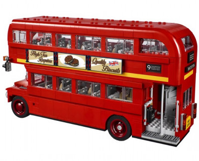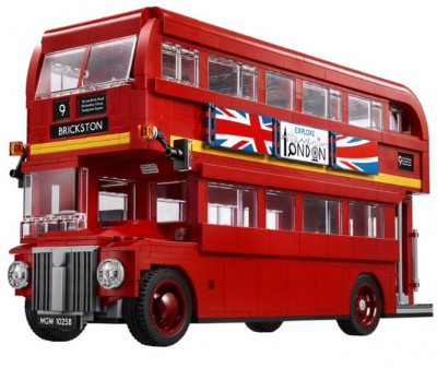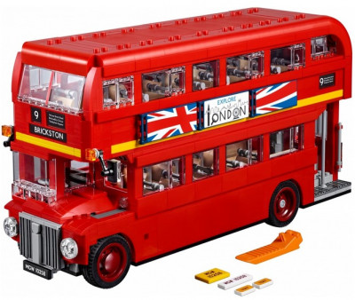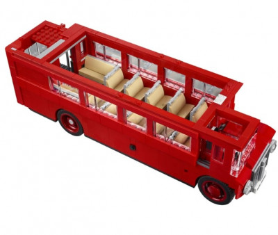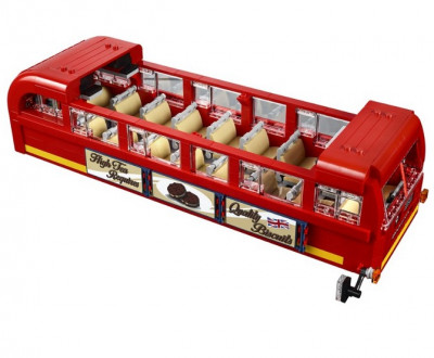 Главный элемент набора – подробная модель Лондонского автобуса. Он выкрашен в красный цвет. Водительская кабина находится спереди, она окружена прозрачными стёклами. Вы можете открыть боковую дверцу и увидеть, что внутри находится чёрное кресло и большой руль.