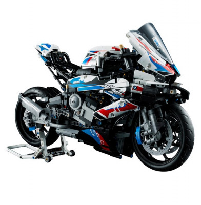 Модель из набора BMW M 1000 RR выглядит очень стильно, для нее предусмотрены две подставки для демонстрации. Также есть специальная табличка, где указаны все характеристики мотоцикла, делающие его фантастически красивым и быстрым.