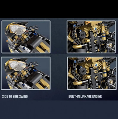 Конструктор Мотоцикл Вихрь, разработанный фабрикой Decool - высококачественный набор серии Техник. Модель повторяет черты спортбайка. Гоночный мотоцикл черно-желтого цвета оснащен вращающимися большими колесами с резиной для треков, действующей цепной трансмиссией и откидывающейся подножкой для парковки. Пополняйте свою коллекцию легендарной техники с нашим интернет-магазином.