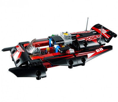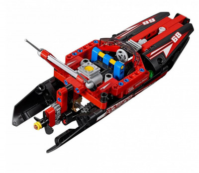 Оцени двигающиеся поршни и вращающийся пропеллер модели, которые можно задействовать при маневрировании. У настоящих гоночных катеров корпус сделан из сверхпрочного кевлара, а стекло закалено и не боится резких порывов ветра и хлёстких ударов волн. Ведь на соревнованиях в открытом море нужно бороться не только с соперниками, но и со стихией.