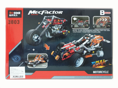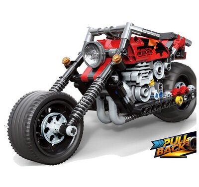 В передней части сборной модели DECOOL MecFactor располагается рулевая стойка. Амортизирующие механизмы позволяют двухколесному транспорту совершать прыжки и при этом сохранять устойчивость конструкции мобиля. Дорогу освещает свет мощной фары. За регулировку скорости отвечают поручни. Работоспособность транспортного средства определяет двигательная система, размещенная под корпусом мотоцикла. В задней части сборной модели конструктора MecFactor располагается сиденье водителя. Движение двухколесного транспорта можно назвать инерционным. Отведи его назад и отпусти. Скорость разгона впечатлит бывалого!