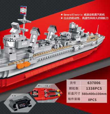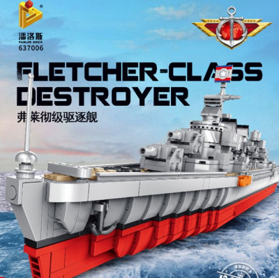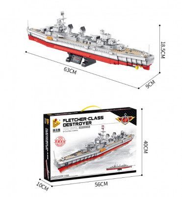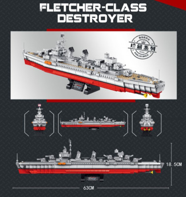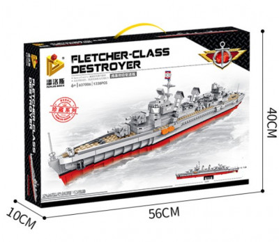 Конструктор военный корабль Эскадренный миноносец типа Флетчер 1338 деталей.