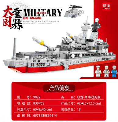 Конструктор Военный корабль крейсер 830 деталей 9022