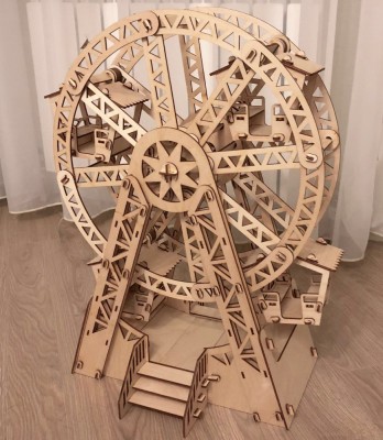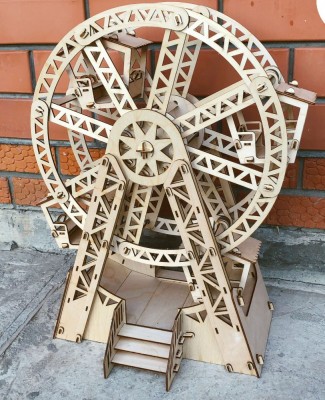 Проработка аттракциона выполнена до мельчайших элементов, поэтому игрушку можно даже презентовать взрослым, как сувенир. Все части конструктора отполированы, поэтому играть с ним будет безопасно. Для сборки НЕ НУЖЕН клей - все собирается легко и крепко.