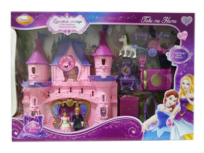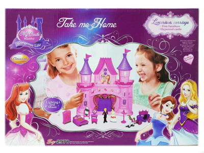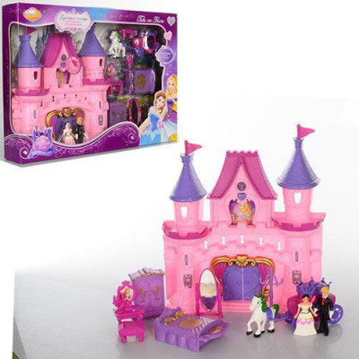 В комплекте: замок, фигурка прицессы и принца, карета, мебель