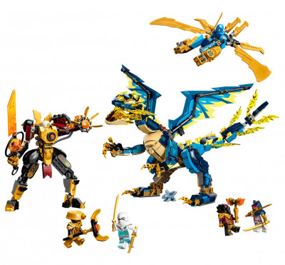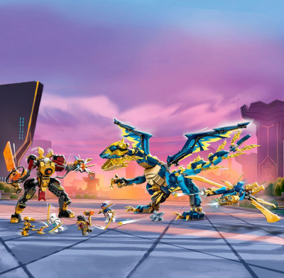 Этот полный приключений набор с драконом, роботом, летательным аппаратом, 6 минифигурками и моделью малыша Райю станет отличным подарком для детей.