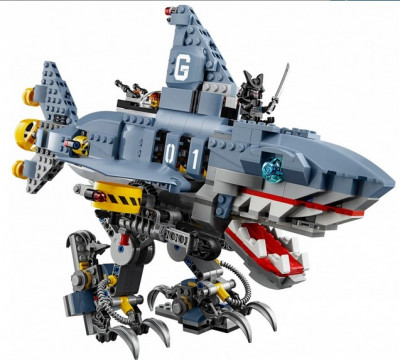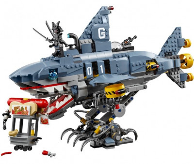 В наборе есть всё, чтобы собрать боевой корабль Гармадона. Он выкрашен в серый цвет с акцентными желтыми вставками. Носовая часть корабля похожа на голову гигантской акулы со страшными глазами и открытой пастью, в которой видны клыки, острые, как лезвия. Неудивительно, что все жители Ниндзяго Сити боятся этого корабля.