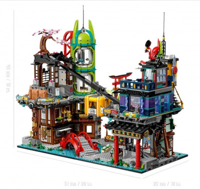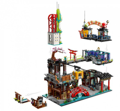 Дети в возрасте от 14 лет и коллекционеры могут ощутить неповторимое волнение и вибрацию места, где живут и играют ниндзя, с этим строительным набором NINJAGO Городской рынок. Самая большая в истории модель world of NINJAGO включает в себя 4 этажа магазинов, ресторанов, офисов и апартаментов, а также канатную дорогу, лифт, лодку, мост и даже туалет со смывом.
