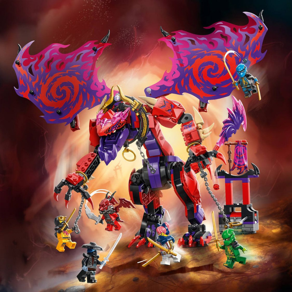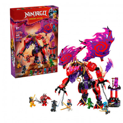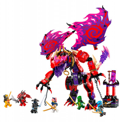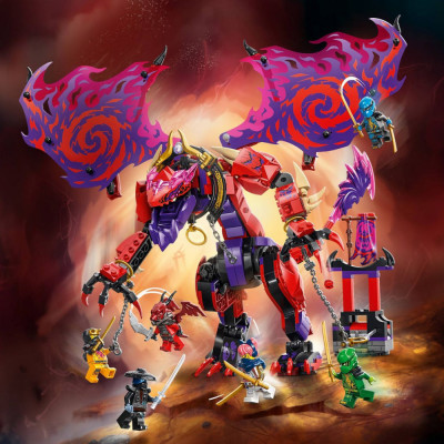 Игрушка из мира ниндзя Громовой Дракон Хаоса позволяет мальчикам и девочкам в возрасте от 8 лет и старше воссоздавать захватывающие действия из 3-го сезона телешоу Dragons Rising. Этот конструктор для детей включает в себя большого игрушечного дракона с подвижным хвостом, ногами, крыльями, ступнями, головой и челюстью, а также с шипометом под каждым крылом. Фигурка дракона прикована цепью к небольшой модели и может быть освобождена, если разблокировать ее с помощью 2 призматических лезвий. В этом игровом наборе представлены 6 минифигурок: воины-ниндзя Ллойд, Ния, Арин и Сора, каждый со своим оружием, а также злодеи Нокт и лидер драконианцев Тир, у которых также есть оружие, чтобы дети могли разыгрывать битвы добра со злом.