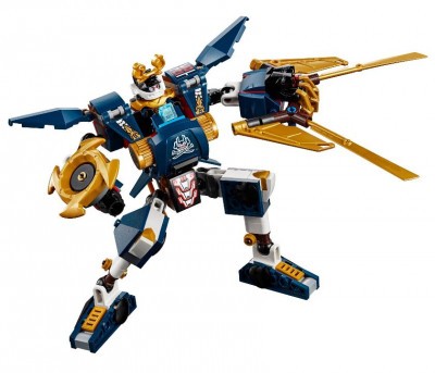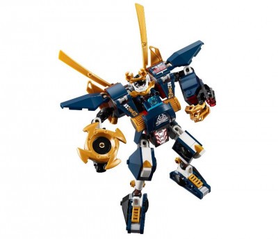 Корпус боевого робота собирается из бело-синих деталей, подчеркнутых золотистыми элементами. Суставы робота имеют подвижные соединения, поэтому фигурка может принимать множество различных поз. Нагрудный щиток надежно скрывает за собой водителя, так что самурай может чувствовать себя в безопасности. Вооружение робота продумано до мелочей. Правая рука заканчивается круглым вращающимся лезвием, левая трансформирована в огромный кулак со спаренной пушкой наверху. На спине робота расположены крепления для катан и острых ножей, которые можно использовать в бою.