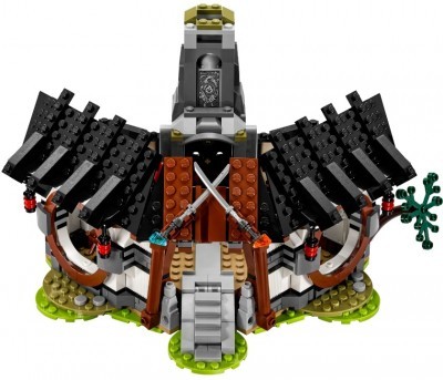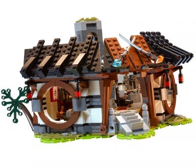 Из деталей конструктора вам предстоит собрать кузницу. Она выполнена из бело-черных деталей, фасад украшают красные фонарики, а главный вход – два скрещенных клинка. Под лестницей находится небольшой тайник, где спрятан кинжал Дракона. С его помощью можно разжечь печи и заставить вращаться волшебный дымоход.